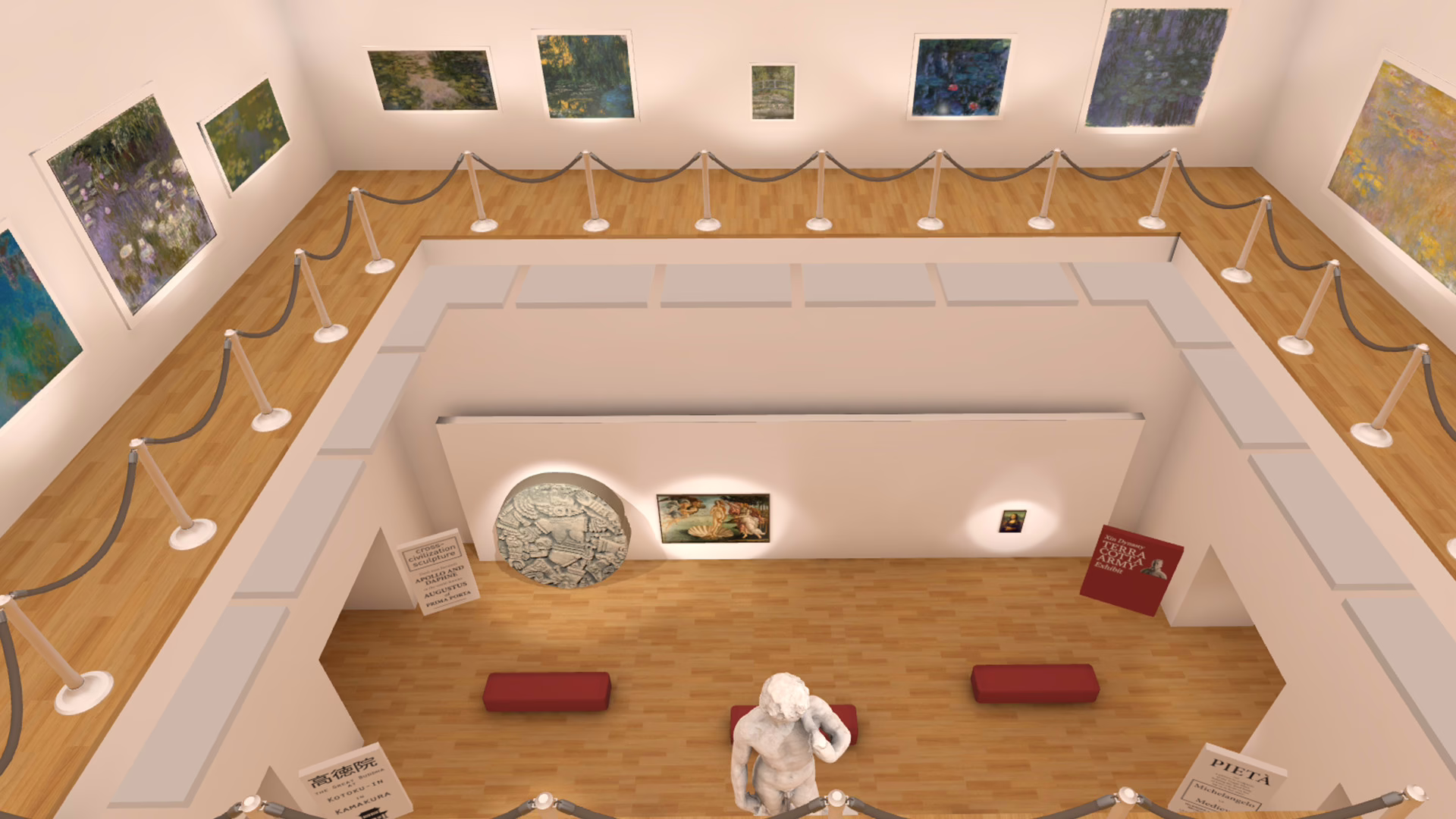 The initial release of The VR Museum includes 15 high-fidelity sculptures, and more are coming. In addition, two famous paintings are included, scanned and rendered in crisp detail. In future releases, both collections of sculpture and paintings are sure to expand. The artwork is arranged thoughtfully into four exhibits, each with its own theme.